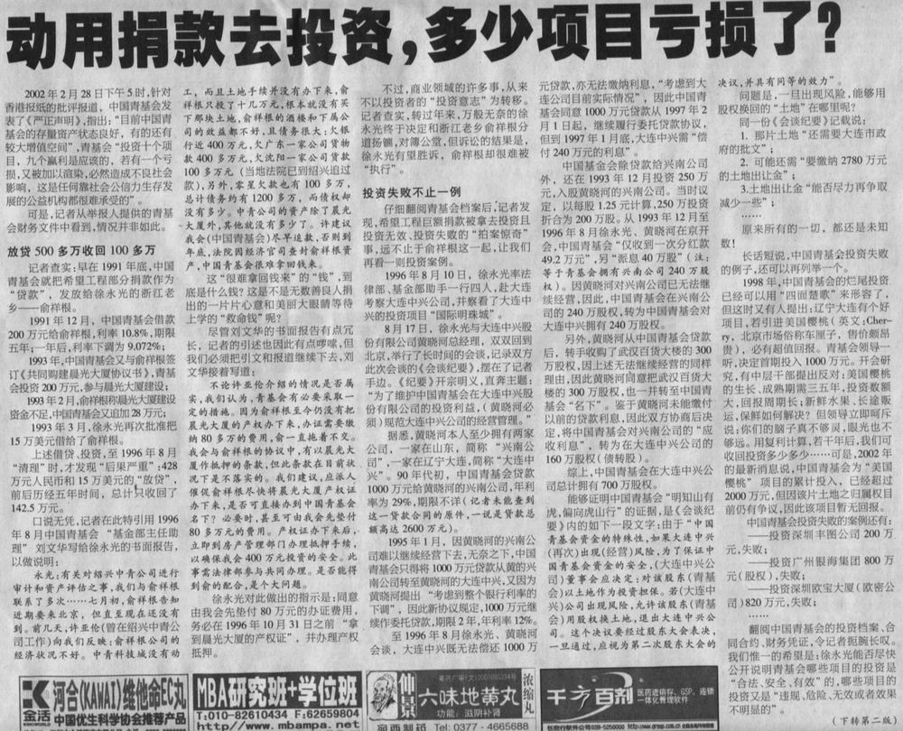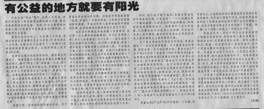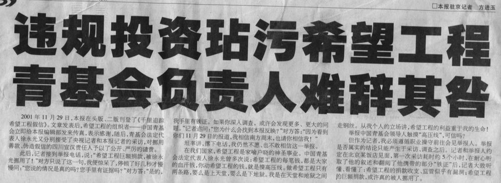 - 3/1, 《明报》报道:中国“希望工程”惊爆黑洞