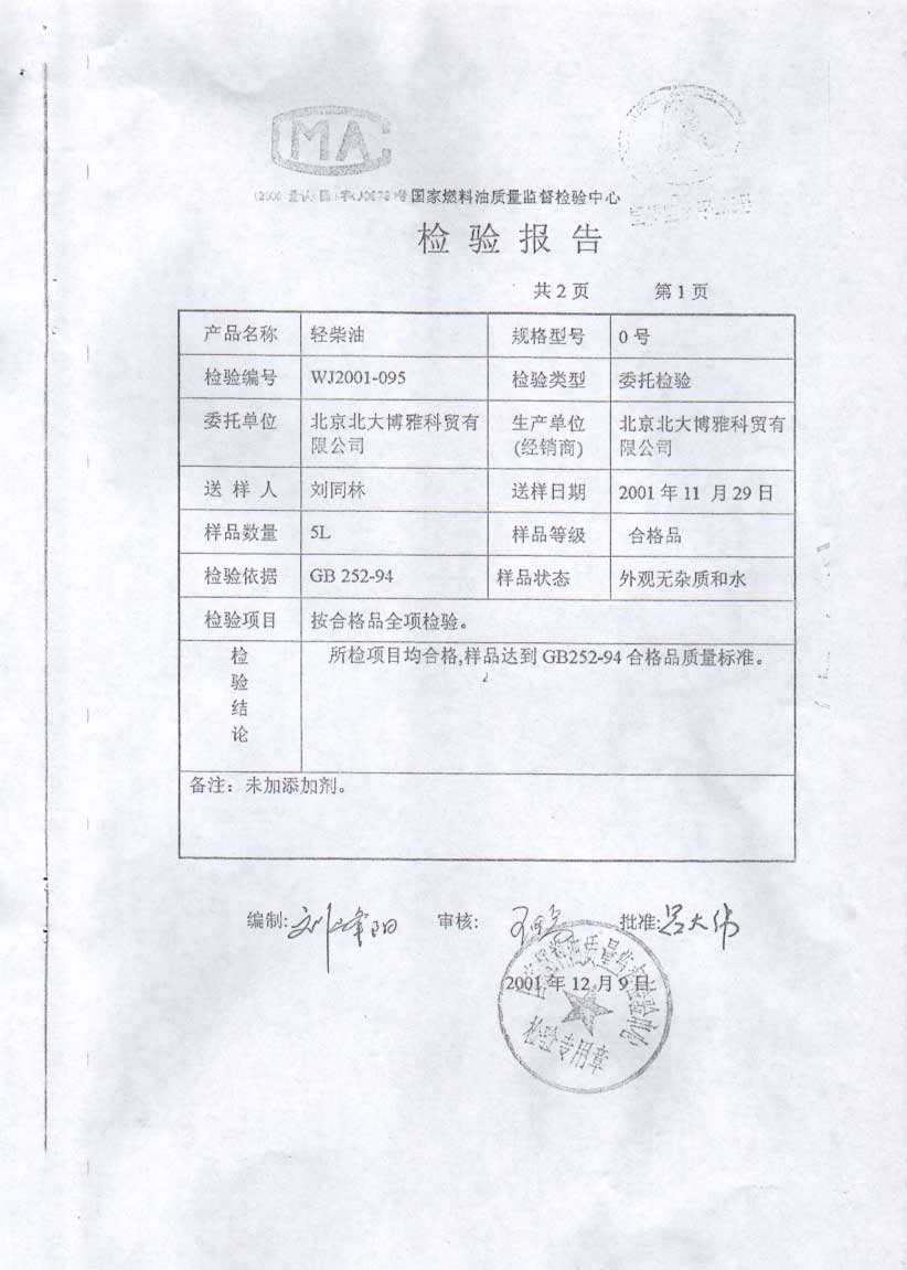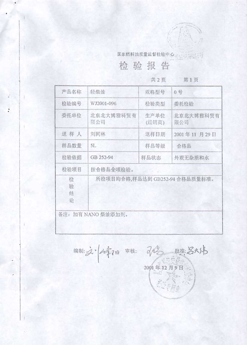 - 03.03.03, 国家燃料油质量监督检验中心结果也表明李正效“纳米水”降低燃油品质