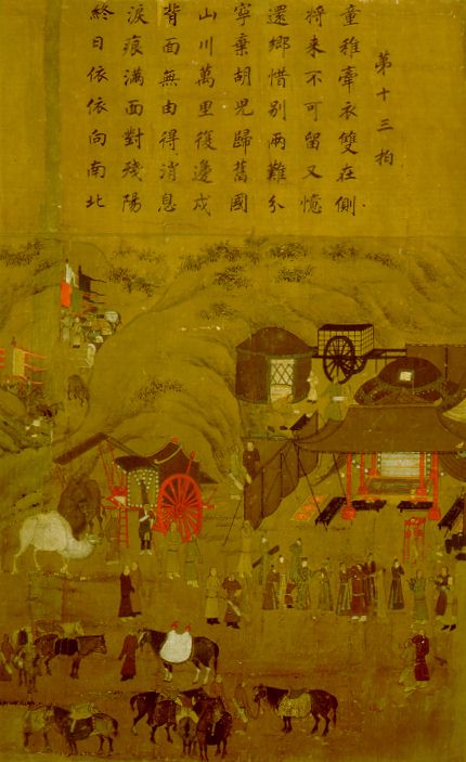 是册写《胡茄十八拍》诗意,此页为第十三拍,幅上配原诗。